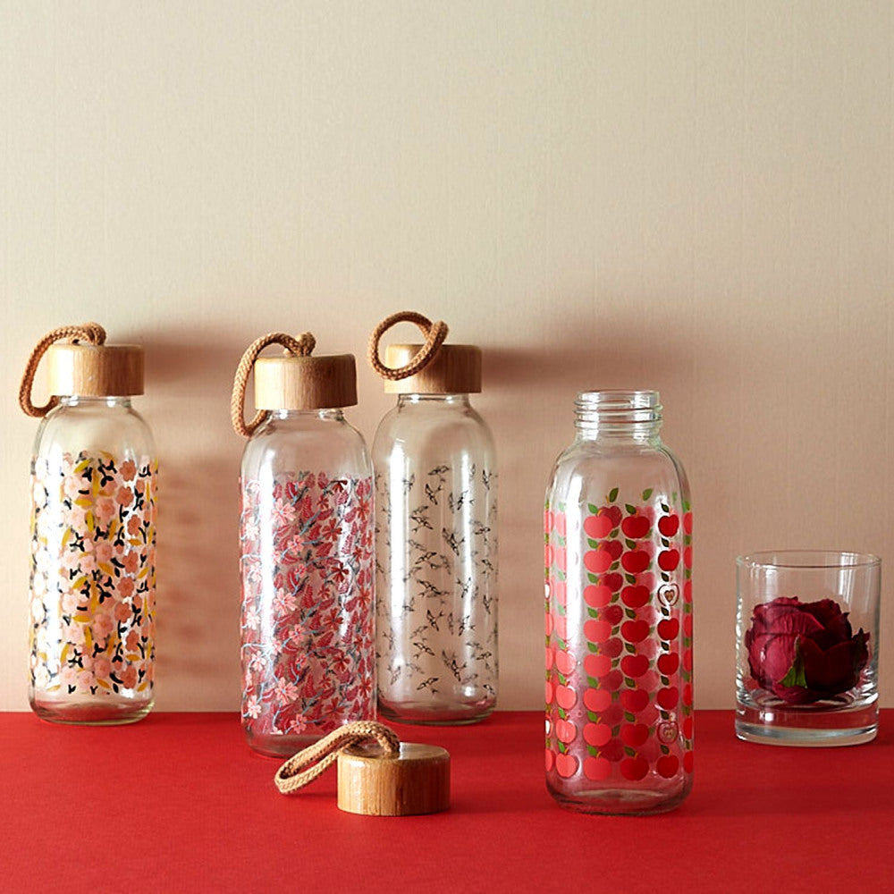 Bella, pratica ed Eco-Friendly, questa bottiglia in vetro a fiori-melette-rondini contiene fino a 400ml !