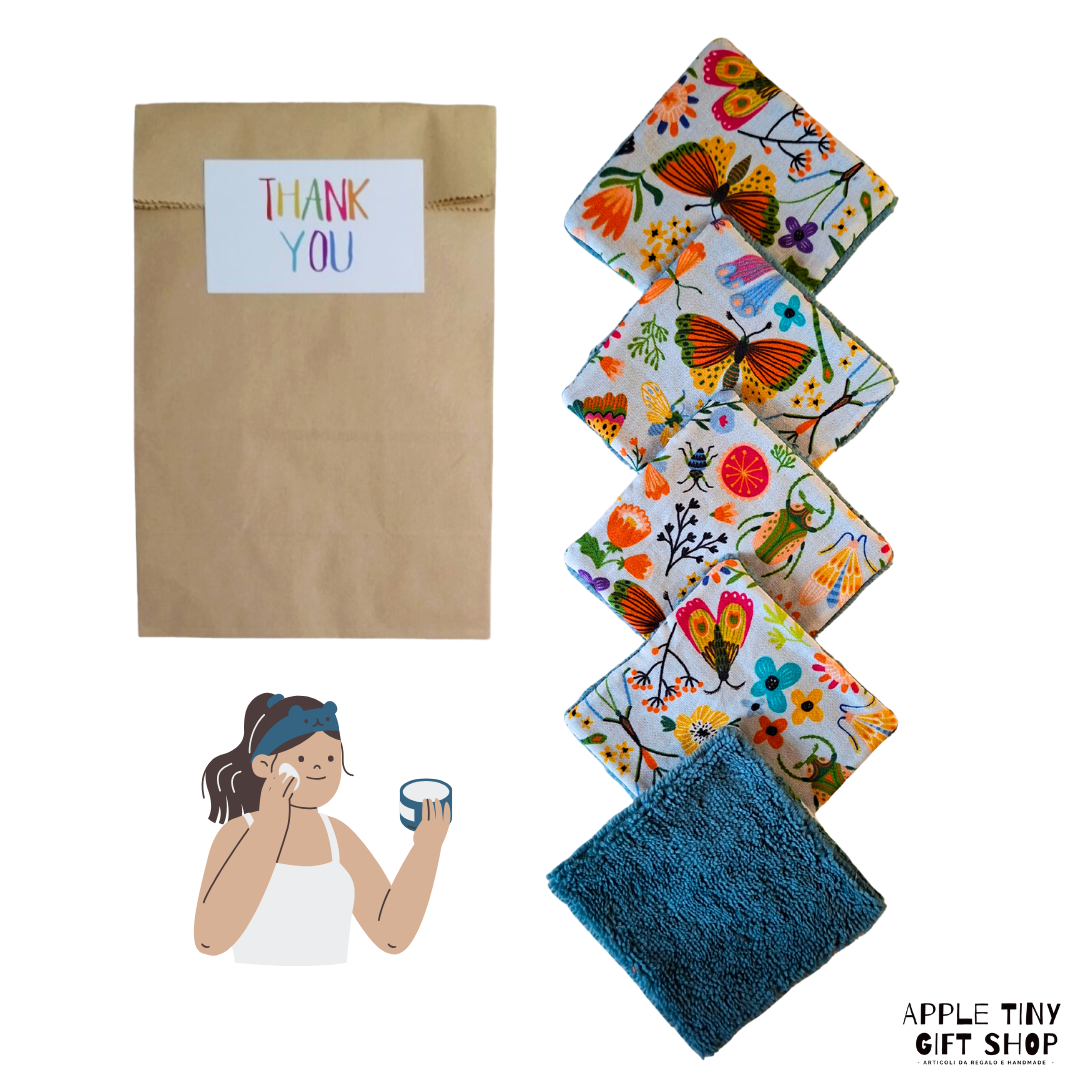 Quindi per un comportamento più responsabile basta prediligere i dischetti struccanti lavabili. Realizzati in cotone e morbidissima microfibra rendono la skincare routine più sostenibile: essendo riutilizzabili, infatti, permettono di contribuire alla riduzione dei rifiuti ergo alla salvaguardia dell'ambiente. Inoltre, se lavati e usati correttamente, i dischetti struccanti lavabili possono durare diversi anni, arrivando a toccare anche i 1.000 lavaggi. Spediti in una graziosa confezione regalo con sacchetto di carta + etichetta handmade.