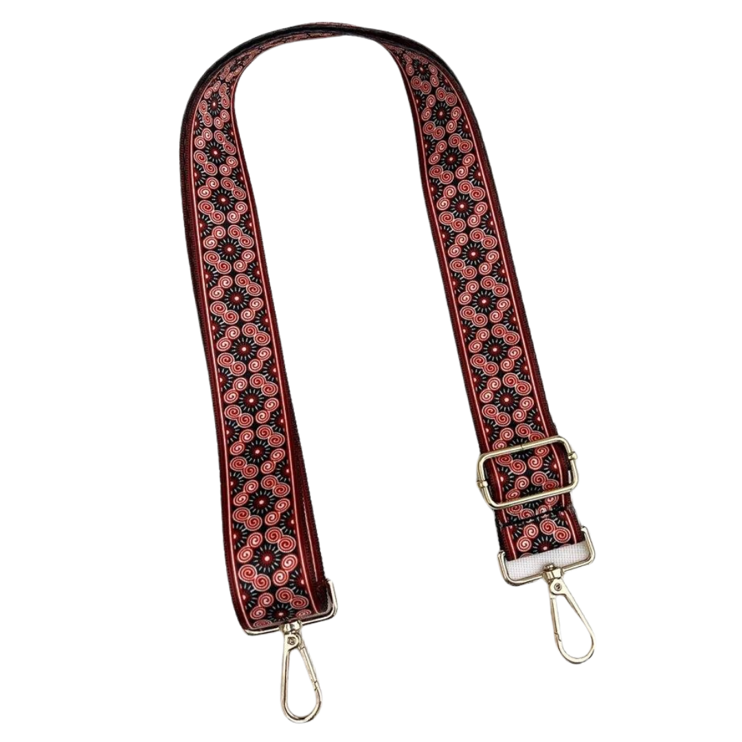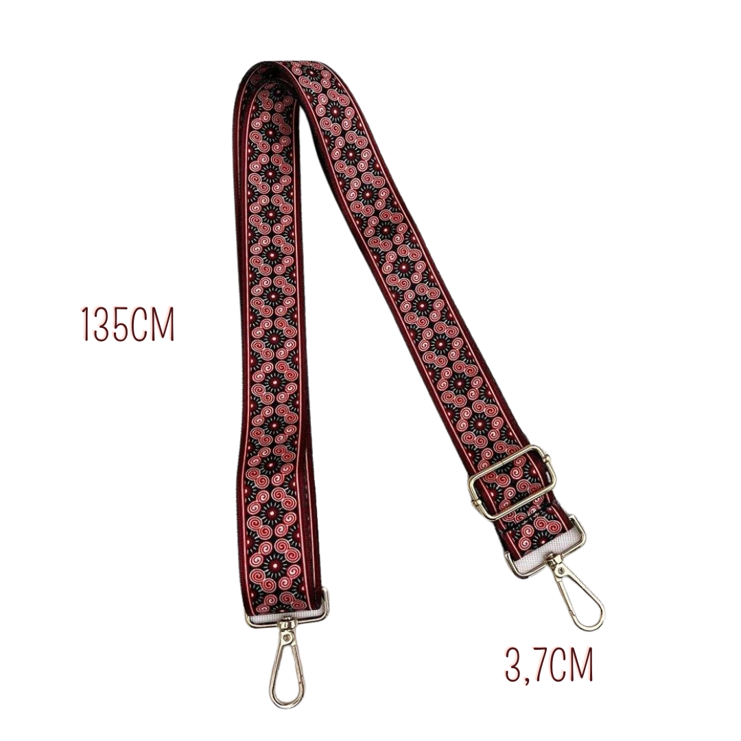 Tracolla regolabile di ricambio per borse, fantasia floreale bordeaux.