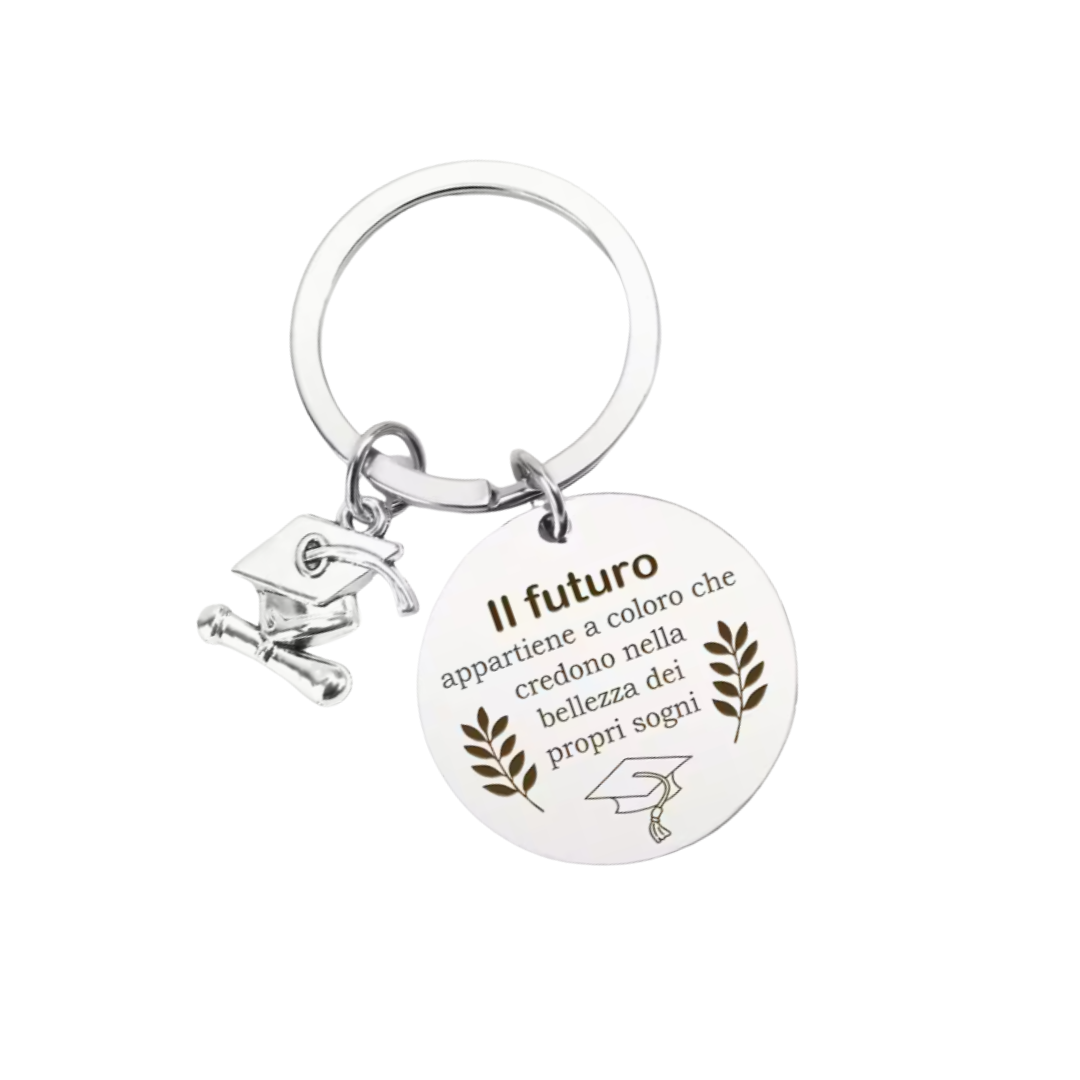 Un portachiavi elegante e simbolico, perfetto per celebrare un traguardo importante o per incoraggiare chi sta inseguendo i propri sogni.