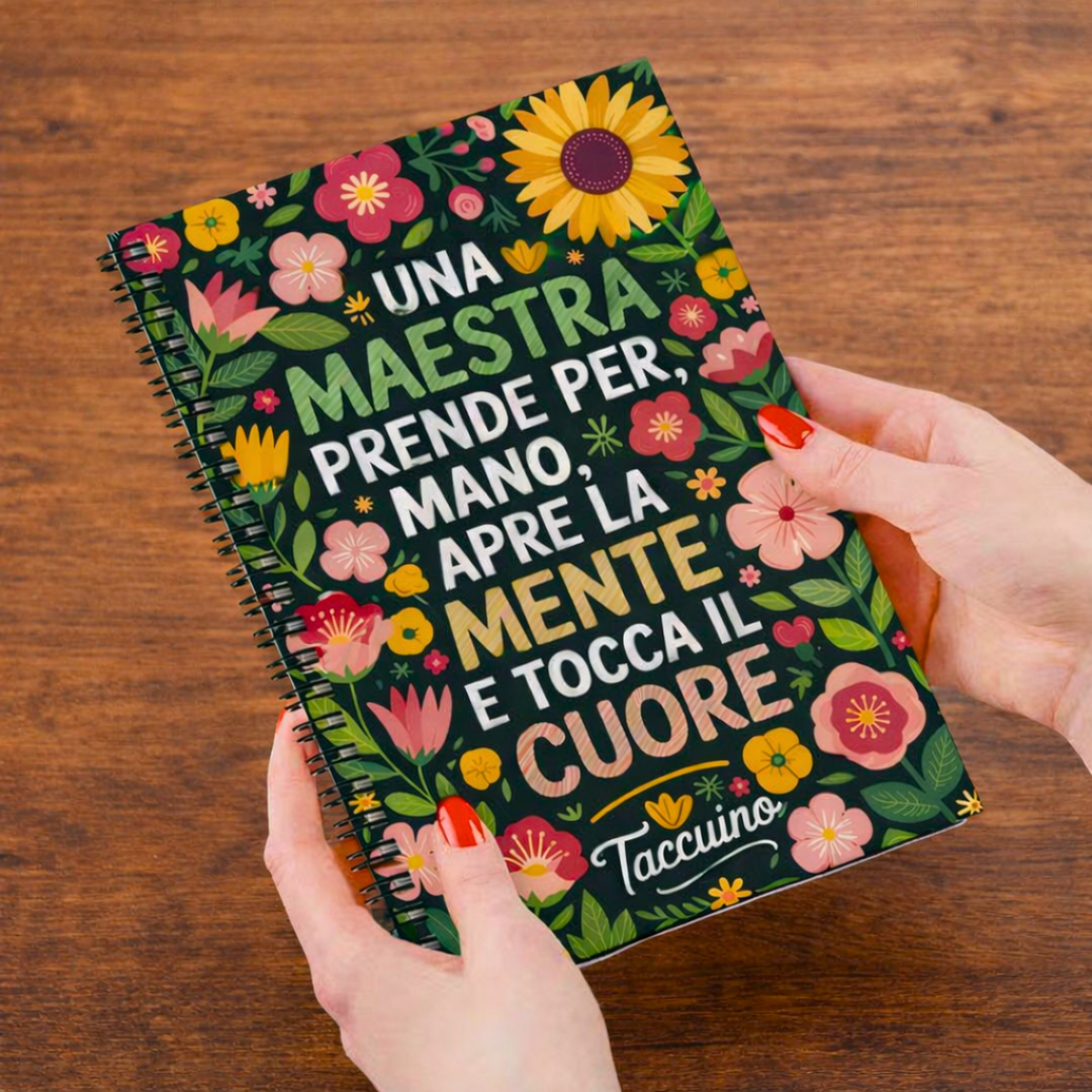 Dolce e significativo quaderno a righe dedicato alle maestre, è pensato come piccolo gesto di gratitudine per chi ogni giorno insegna con passione e pazienza. Perfetto per appunti, pensieri, annotazioni scolastiche o personali.